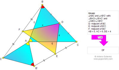 Problem 772: Similar triangles with a Common Vertex, Equal Angles, Midpoints, Metric relations