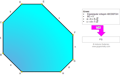 Problem 891: Equiangular Octagon, Metric Relations, Sides, Auxiliary Lines