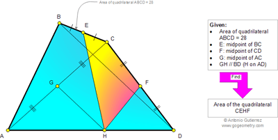 Hence S(CEFH) = S(EHF) + S(ECF) = ¼ {S(ABD) + S(BCD)} = ¼ S(ABCD) =7
