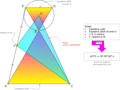 Geometry Problem 956: Two Equilateral Triangles, Center, Collinear Points, Midpoint, Right Triangle, 30, 60, 90 Degrees