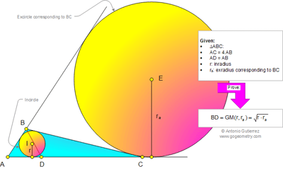 Online Geometry Problem 959. Triangle, Sides Ratio 4:1, Inradius, Exradius, Cevian, Mean Proportional, Geometric Mean