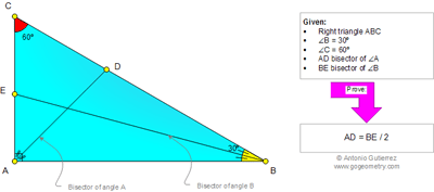 Online Geometry Problem 963: Right Triangle, 30-60-90 Degrees, Angle Bisectors, Metric Relations