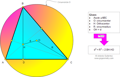 Geometry Problem 977: Acute Triangle, Circumcenter, Orthocenter, Distance, Circumradius, Altitude, Metric Relations