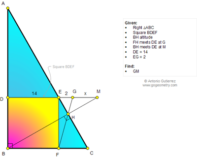 Geometry Problem 1015. Right Triangle, Square, Altitude, Metric Relations