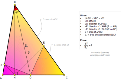 Geometry Problem 1016. Triangle, 45 Degrees, Area, Quadrilateral, Altitude, Bisector