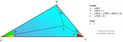 Online Math: Geometry Problem 1025: Triangle, Double, Triple, Angle, Interior Point