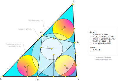 ReplyDeleteNote that incenter of triangle ABC is coincided to incenter of triangle A2B2C2