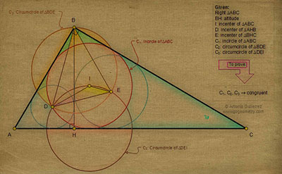 Geometric Artwork of Problem 794. Right Triangle and Circles. PicSketch for iPad