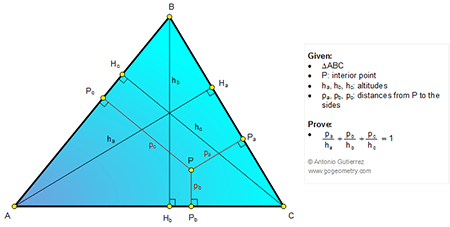 Online Math: Geometry Problem 1072: Triangle, Altitudes, Interior Point, Distance, Ratio.
