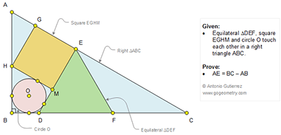 Online Math: Problem 1092. Equilateral Triangle, Square, Circle, Tangent, 90 Degree, Sangaku.