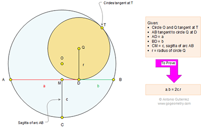 Geometry Problem 1094: Tangent Circles, Tangent Chord, Radius, Sagitta of Arc