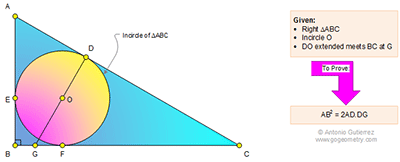 Problem 1102: Right Triangle, Incircle, Tangency Point, 90 Degree, Cathetus, Metric Relations