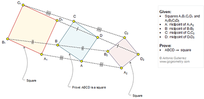 So square ABCD will be the image of square A1B1C1D1 in the spiral similarity transformation ( center O, angle of rotation= θ and factor of dilation = k)