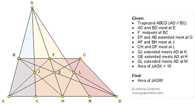 Geometry Problem 1192: Trapezoid, Triangle, Diagonal, Midpoint, Area, Parallel