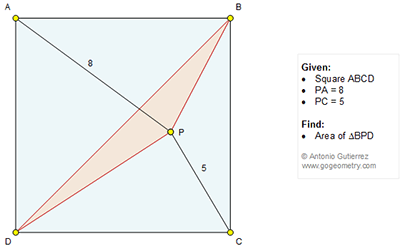 2. If we want to compute the area of Tr. APC or any other triangle in the diagram we will need to know the value of p, the side of the square
