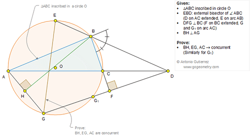 ReplyDeleteSumith and Apostolis already showed concurrency of BH, EG and AC. I will show that point G1 will have the same property as point G.