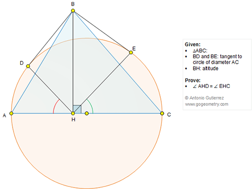 Geometry Problem 1281 Triangle, Circle, Diameter, Tangent, Altitude, Congruent Angles