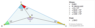 Geometry Problem 1299 Triangles, Interior Point, Angles, 30 degrees