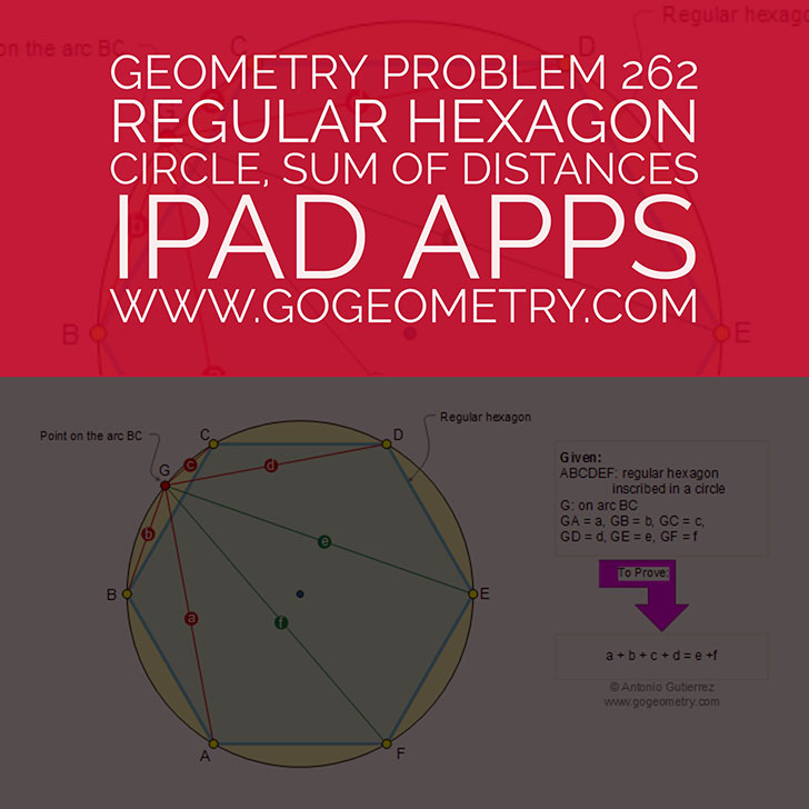 Geometry Problem 262: Regular Hexagon inscribed in a circle, Distances, Typography, iPad.