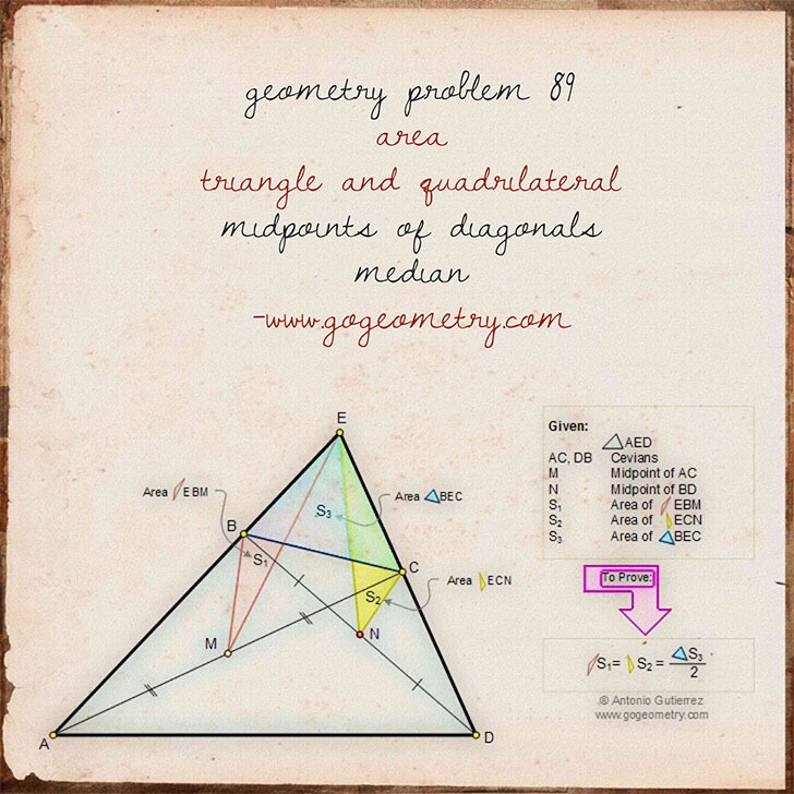 Typography of Geometry Problem 89. Area of Triangle, Midpoints, Mobile Apps, iPad.