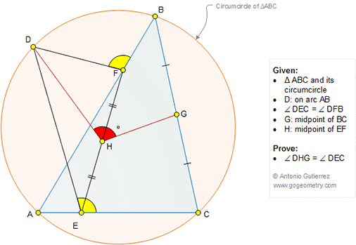 Geometry Problem 1359: Triangle, Circumcircle, Congruent Angles, Midpoints